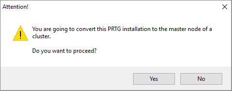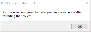 - This button is also available if the PRTG core server is in Cluster Mode: Master Node. This option then changes the master node to a failover node.