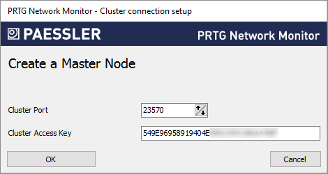 - Click Create a Cluster to create a cluster. The current PRTG core server is then the master node of the cluster.