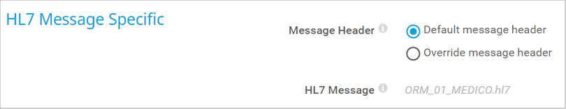 Define if you want to use the default message header (MSH) as defined in the selected .hl7 message file or if you want to override certain headers: