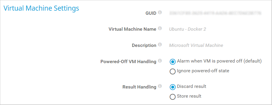 - Ignore powered-off state: Do not change to the Down status if the VM is powered off. The sensor reports zero values instead.