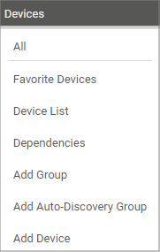 Click to open the Libraries list where you can view or add custom device tree views of your network status and monitoring data. Hover over Libraries to show other options.
