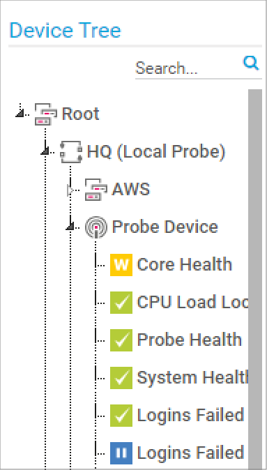 at the beginning of a line to expand objects in the device tree and show objects below probes, groups, and devices. Click to collapse the object again.