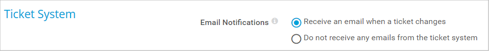 - Receive an email when a ticket changes: The user receives an email each time a ticket is assigned to the user or to the user group they are a member of, or if a ticket is changed.