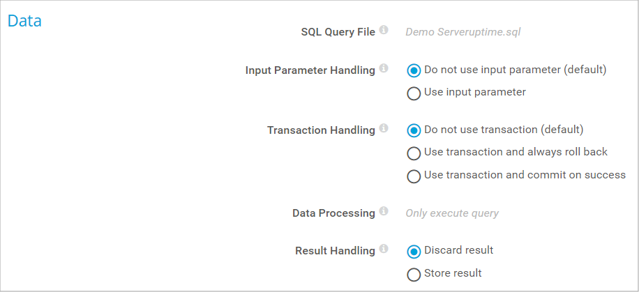 - Use input parameter: Execute an SQL query file that contains a variable. Provide the parameter that you want to use in the query below.