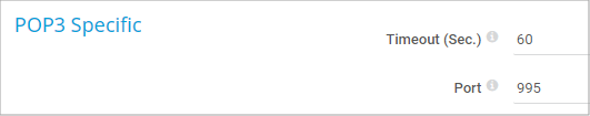 Specify the port that the sensor uses for the POP3 connection. The default port for unsecure connections is 110 and the default port for secure connections is 995. The actual setting depends on the server you connect to. Enter an integer.