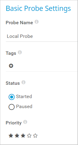 The following settings are available on the Settings tab of a probe.