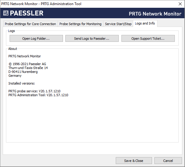 If you open a support ticket, the Paessler support team might ask you to send logs for further analysis.