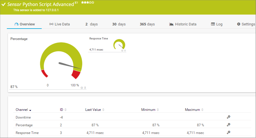 The Python Script Advanced sensor executes a Python script on the probe system. This option is available as part of the PRTG API.