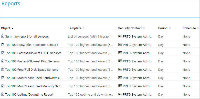 PRTG provides several preconfigured reports that you can also edit or delete.