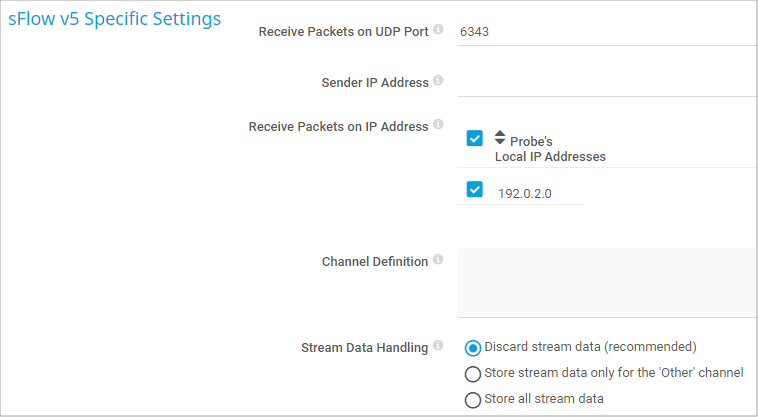 IP address of the sending device. Use this if you have several devices that send flow data on the same port, and you want to divide the traffic of each device into a different channel.