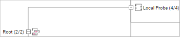 Gray lines show a dependency by inheritance (Use parent setting). The source of the dependency is the parent object on the left end of the line, for example, Root is the parent of Local Probe.
