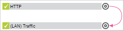 Pink lines show a dependency that you set manually (Select a sensor setting). The source of the dependency points to the dependant with a pink arrow at the line's end.