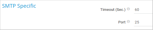 Enter the number of the port that the sensor uses to send an email via SMTP. The default port for unsecure connections is 25 and the default ports for secure connections are 465 or 587. The actual setting depends on the server that you connect to. Enter an integer.