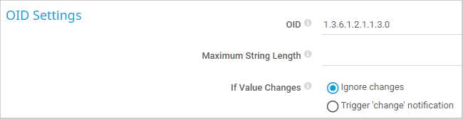 Define the maximum length of the string that PRTG receives from the SNMP object at the OID. If the string is longer than this value, the sensor shows the Down status. Enter an integer or leave the field empty.