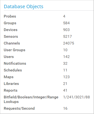 Shows a value that is calculated from the total number of sensors and the average scanning interval configured. This number indicates how many monitoring requests per second are sent from the probes to the devices in your network.