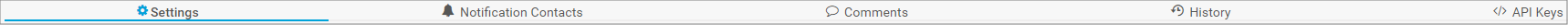 On the History tab, all changes in the settings of an object are logged with a time stamp, the name of the user who made the change, and a message. The history log retains the last 100 entries.