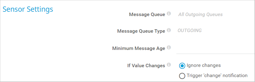 Optionally define an age in minutes that the message must be for the sensor to count it. If you set a minimum message age, the sensor does not regard messages that are younger than this age. If you leave this field empty, the sensor does not check for the message age. Enter an integer or leave the field empty.